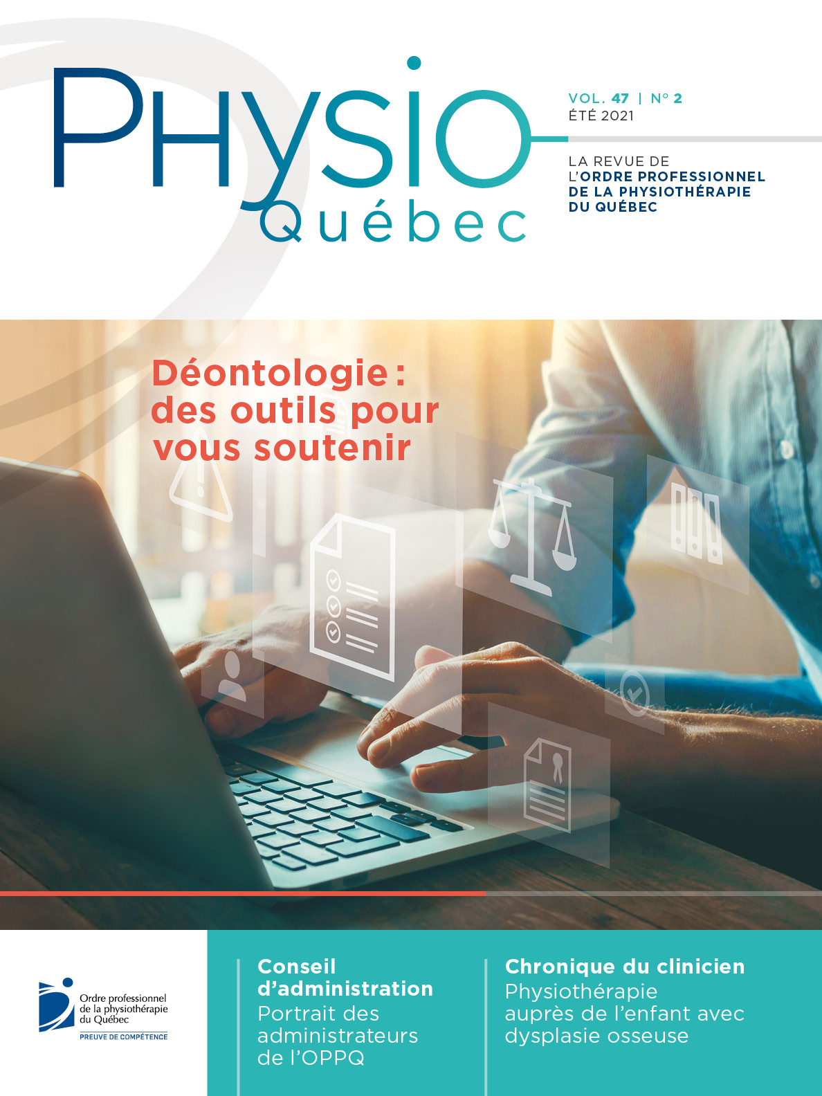 La revue Physio-Québec diffuse de l’information relative, notamment, à la vie professionnelle, à la déontologie, aux dossiers actuels, aux nouvelles et aux événements concernant le milieu de la physiothérapie.